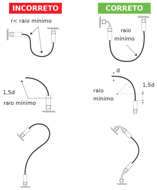Manter a mesma configuração da instalação: evite mover, mudar ou alterar a trajetória da sua mangueira não respeitando as especificações de instalação, como o raio mínimo de curvatura.